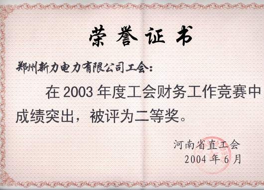 03年省直工会财务工作二等奖