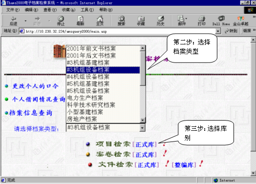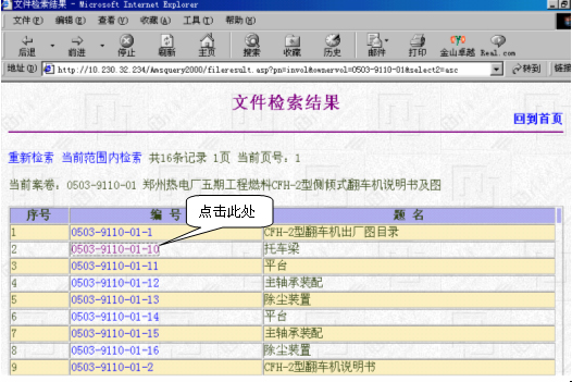 首先在上图选择档案类型,“#3机组设备档案”;然后点击‘项目检索’进入其检索条件页面,