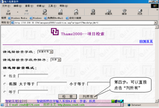 图中可选择某个信息段进行检索,如年度代号等,也可点击‘列所有’按钮,进入其项目目录,如下图: