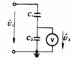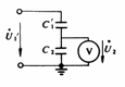 图3是电容分压器与低压电压表组成的测量系统的原理接线图,图上C1和C2分别为电容分压器的高压臂电容和低压臂电容(包括测量电缆的电容);V为低压电压表。由低压电压表V的指示值U2和电容C1及C2得到被测电压
