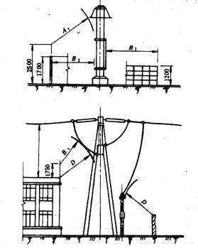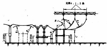 第4.1.1条 屋外配电装置的安全净距不应小于表4.1.1所列数值,并按图4.1.1-1、4.1.1-2和图4.1.1-3校验。