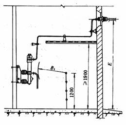 配电装置长度大于7m,小于等于60m时,应有两个出口,长期来就按此执行,并无很多单位提出意见。最新的苏联安装规程也仍作此规定,并提出当配电装置长度大于60m时,除其端头的出口外,应增加出口,以使从维护走廊、操作走廊或防爆走廊的任一点到出口的距离不大于30m。故本条文仍按原规程未作修改。