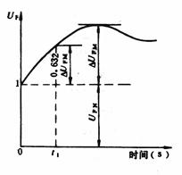 励磁系统初始响应是指励磁电压按指数曲线增长,励磁电压开始增长时的上升速度(见图3)。按下式计算
