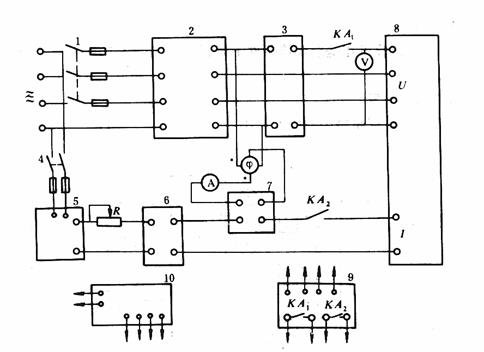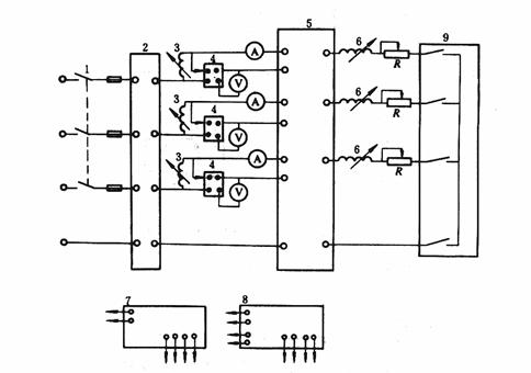 1—三相控制开关;2—三相调压器;3、6—可调电感器(阻抗角