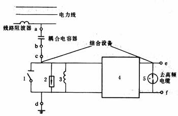 结合设备接在耦合电容器的低电压端和连接电力线载波机的高频电缆之间;或者在桥路情况下,直接或经过附加设备接往另一台结合设备。