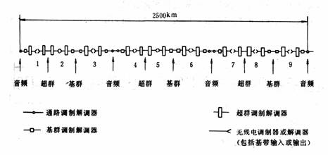2.1.1.2 该电路在每个传输方向上应包括3套音频调制解调器,6套基群调制解调器,9套超群调制解调器。