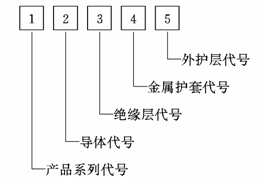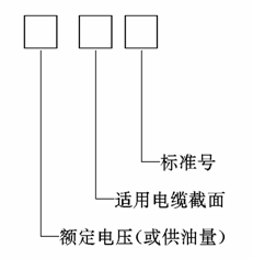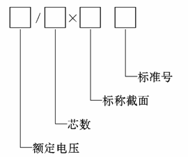 3.2.1 电缆产品型号由产品系列代号和各组成部分代号组成,产品用型号规格(额定电压、芯数、标称截面)及标准号表示,其构成示意如下:
