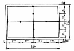 (3)厚度:用精度0.01mm的专用百分测量计测量。测量方法是在一片炸药上正交线上取9点(如图 1),取平均值,但每点的厚度应在5±0.5mm范围内。