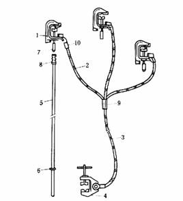 3—金属棒端部的夹紧件;4—接地操作棒上的紧固头;5—短路线