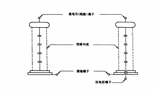 b.电容式电压互感器的电容分压器(见图A3及图A4);