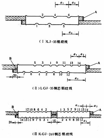 第6.0.10条 调研中得知,各地在导线连接方面,采用压接中,有采用液压工艺的施工方法,建议在本规范内提出施工质量的规定。鉴于该项工艺规定内容多,原水电部已颁发了这方面规定,故本规范不再列入。当导线连接方式采用液压工艺时,应遵照该规程内的规定进行。
