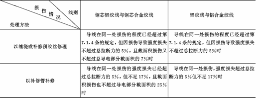 六、导线或避雷线补修处线股损伤情况。