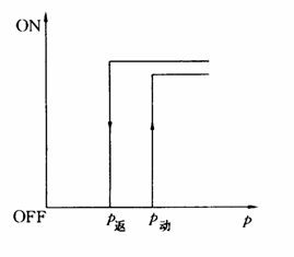 图中,p动为压力开关动作值,p返为压力开关返回值。死区δ=|p动|-|p返|。