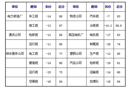 公司属各单位: 为努力完成总公司年度安全工作目标,进一步加强基层单位的班组建设,今年二月公司组织开展了基层单位各班组“安全文明生产达标”活动。在厂领导、厂工会和厂安环部直接关心和指导下,以及公司领导精心组织和各基层单位齐心协力,共同努力,“班组安全文明生产达标”活动开展顺利。截止五月底已有二十个班组申报“安全文明生产达标”。 6月份公司成立以杨玉山总经理为组长以党政工行政部门为成员的班组安全文明生产达标验收小组,通过一星期的时间对所申报班组进行了全面检查验收,现将检查验收情况及存在的问题通报如下: 一、验收班组评分情况 二、根据厂“安康杯”班组安全文明生产达标活动的要求,申报达标的班组必须在考核标准分85分及以上的规定。此次验收达标班组在85分及以上有:电力修造厂车工班、电工班;通讯公司检修班、运行班;综合服务公司管道班、清扫班;物资公司仓库班、汽车班;塑钢公司生产班;汽车运输公司运输班。 三、取得的成绩 在本次检查中,各基层单位对厂和公司开展的“班组安全文明生产达标”活动比较重视,班组行动力度大,从检查总体来评价,各班组比以往检查的状况有了较大的进步,特别在班容班貌、班组纪录、设备台帐、现场设备、环境卫生等方面有了很大改观。塑钢公司、电力修造厂、汽车运输公司等单位的领导班子,能正确对待此项活动的开展,他们积极主动、行动快,对班组建设方面高标准、严要求。特别一些基层班组能正确贯彻执行厂、公司对开展班组安全文明生产达标的目的和要求,态度端正、工作扎实,活动有声势,落实有进度,能够按照达标项目要求逐条逐项把关。例如塑钢公司的生产班、绿洁公司的清扫班,达标工作开展有成效,现场设备整洁,办公机具摆放整齐,门窗净明,班容班貌,换然一新。高压电机厂和塑钢公司联手对大院进行整治,填坑推土,除杂草,建草坪,创造条件,美化环境。在这次检查中不难看出,还有一些班组在条件简陋的情况下努力去创造条件努力进取,也有许多班组在基础条件好的情况下仍然将一切搞得井井有条,这些班组达标基础工作就做得比较扎实。 四、存在的问题 对查出的问题主要表现在以下几个方面: 1、在这次检查中发现,有的班组对安全管理资料存放比较零乱,没有分类,摆放不一,按照厂达标考核标准,资料管理应有秩有序,应一目了然。有的班组安全管理资料还有短缺现象。 2、多数班组没有建立班组“安全核心组”,这个问题应该引起各级领导高度重视,因为“安全核心组”工作的正常开展,直接关系到班组安全保证措施的正确落实,安全系数的高低。有的班组虽建立了而没有明确的职责分工,活动开展情况没有记录记载。 3、检查各班组每周一次安全日活动开展情况,都有安全活动记录,但内容简单不够充实,实效性差。还有些班组对厂、公司开展的一些重大安全活动,例如春季安全大检查活动、六月安全生产月活动等,记录中没有体现。有的班组对同样学习的内容,反复在几个安全活动日组织学习,没有按照厂、公司的要求去开展安全活动。今后,我们要严格按照厂达标考核的标准要求去对照执行。 4、在班容班貌方面,有的班组没有按照“五净”和“五整齐”的要求去进行管理,(“五净”,即门窗、桌椅、地面、箱柜、墙壁,“五整齐”即桌椅、箱柜、桌面用品、柜桌内物品、上墙图表。)卫生有死角。在这次检查中发现,有些班组是经过厂创一流、贯标的所在单位,例如物资公司、综合服务公司是贯标认证单位,通讯公司、电力修造厂均是随厂创一流的部门,基础条件是优厚的,可体现在人们面前的却是开关上有浮灰,墙角里有蜘蛛网,桌椅上有污渍,卫生间脏、差,这是不应该出现的现象。高压电机厂、粉煤灰公司等单位在班容班貌上,也不同程度存在卫生死角。 5、在设备管理上,有的班组的设备台帐记录有缺项,设备无厂家、无型号。有的台帐无编号、设备检修无记录。公司在2001年就制定并印发了一批《设备管理台帐》,内容项目特别清楚,要求格式都有规定。另外班组的电动、移动安全工器具等设备管理上,不能严格按规定校验,校验结果不能及时登记,这是一个明显的违章现象。生产现场设备检查时有的漏油,有的设备地面有积油,有的设备检修工作完后垃圾不清理,没有做到“工完场净”。综合服务公司的热力站、空调间等设备标志、标牌不统一,有的设备上没有标牌,管道无介质流向,有的陈旧不清,变压器房设备漏油现象比较严重。厂办公楼-2米设备区内设备上、地面浮灰多。通讯公司的检修班的机房设备、运行班的一些设备上也有积灰。这说明我们班组在每日保洁上和设备清扫的问题上管理上有缺陷,制度责任落实和考核上存在不足,力度不大。我们此次检查有多数班组没有建立清扫和保洁制度。在设备定置管理方面,综合服务公司的绿洁公司绿化班,设备管理零乱,物品摆放不整齐,易燃物品存放不符合规定,检查时屋内有明显的汽油味。在检查高压电机厂制氧班现场时,严禁烟火区域内地面上发现有烟头。 以上问题,请各单位认真整改。 公司开展班组安全文明生产达标活动,目的是强化安全管理,巩固安全基础,推动多经班组安全文化建设,更好更安全进行生产、经营活动,创造效益。希望各级领导要高度重视,发动职工,全