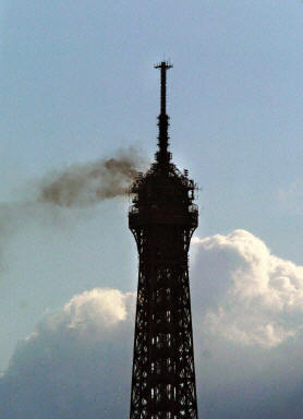 (图)巴黎埃菲尔铁塔因电线短路起火 幸无人员伤亡