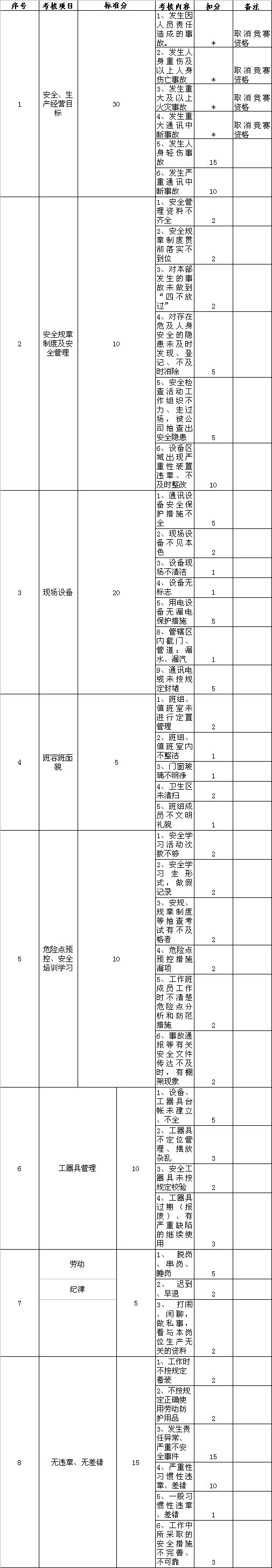 通讯公司百分考核评分细则(10)