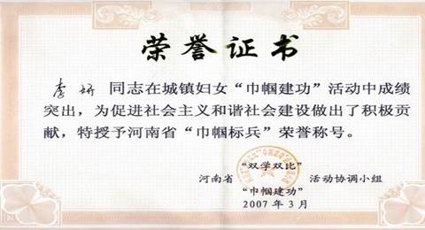 发电部李妍获河南省“巾帼标兵”荣誉称号